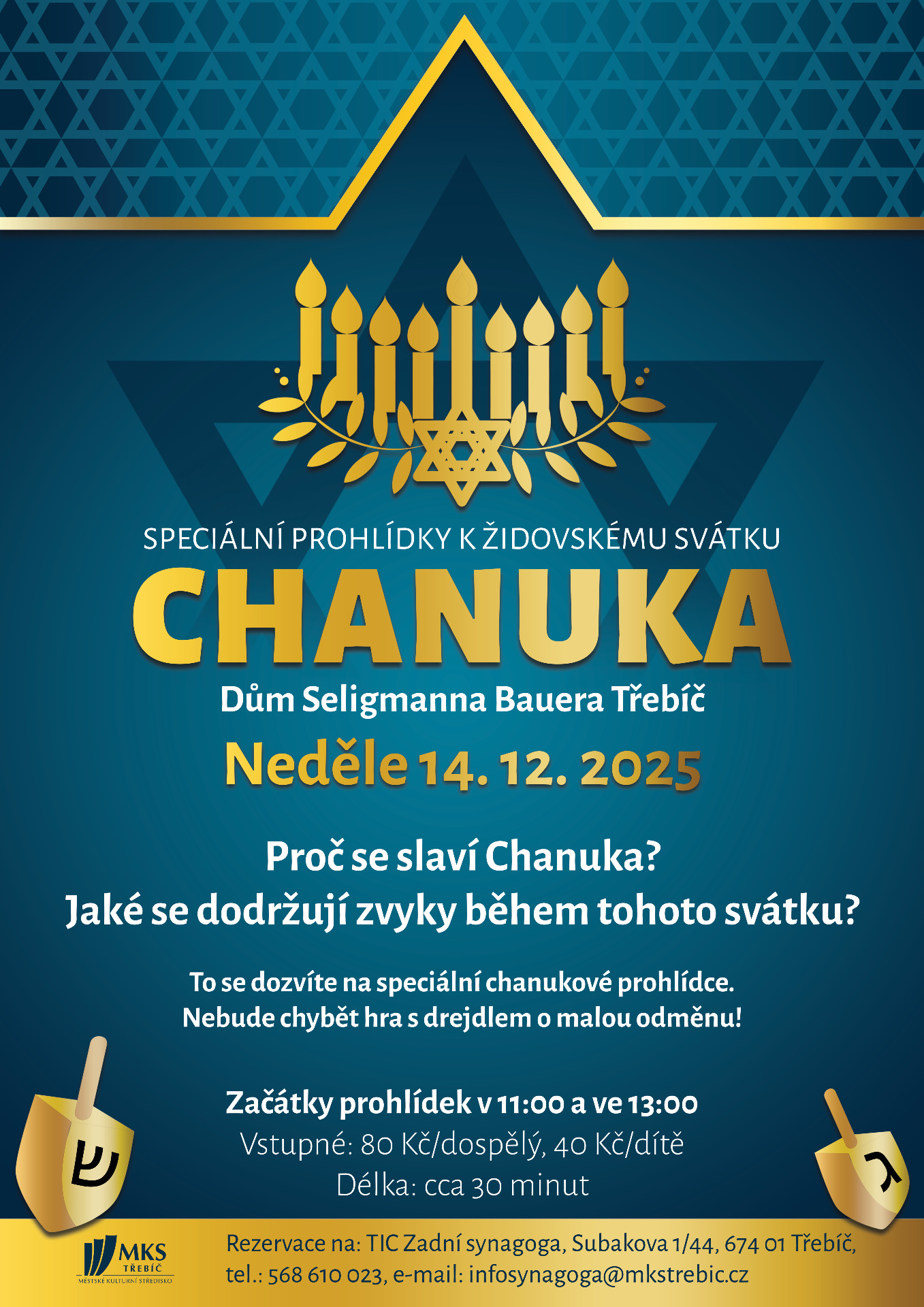 To se dozvíte na speciální chanukové prohlídce.Nebude chybět hra s drejdlem o malou odměnu!
