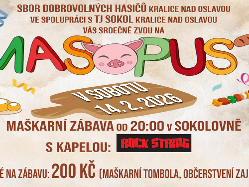 Maturitní ples TLB4 s Kapelou Rock String se uskuteční 7.2.2026 v KD ve Starči od 19:00. Občerstvení zajištěno, srdečně zvou pořadatelé.