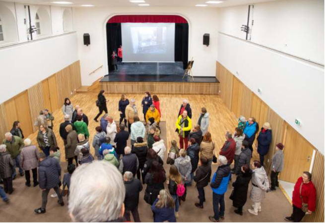 Návštěvníci a návštěvnice dychtivě naslouchali výkladu o historii rekonstrukce Sokolovny, a divili se, co všechno celému projektu předcházelo. Ve své úvodní řeči to umínil Petr Kafka z náměšťského městského úřadu, tak mu dejme slovo.